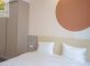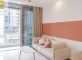 This modern 64 square meter one-bedroom apartment at Linden Residences – Empire City boasts a stylish interior design. The soft peach pastel color palette and the private balcony provide a bright and airy feel, making it the perfect retreat.